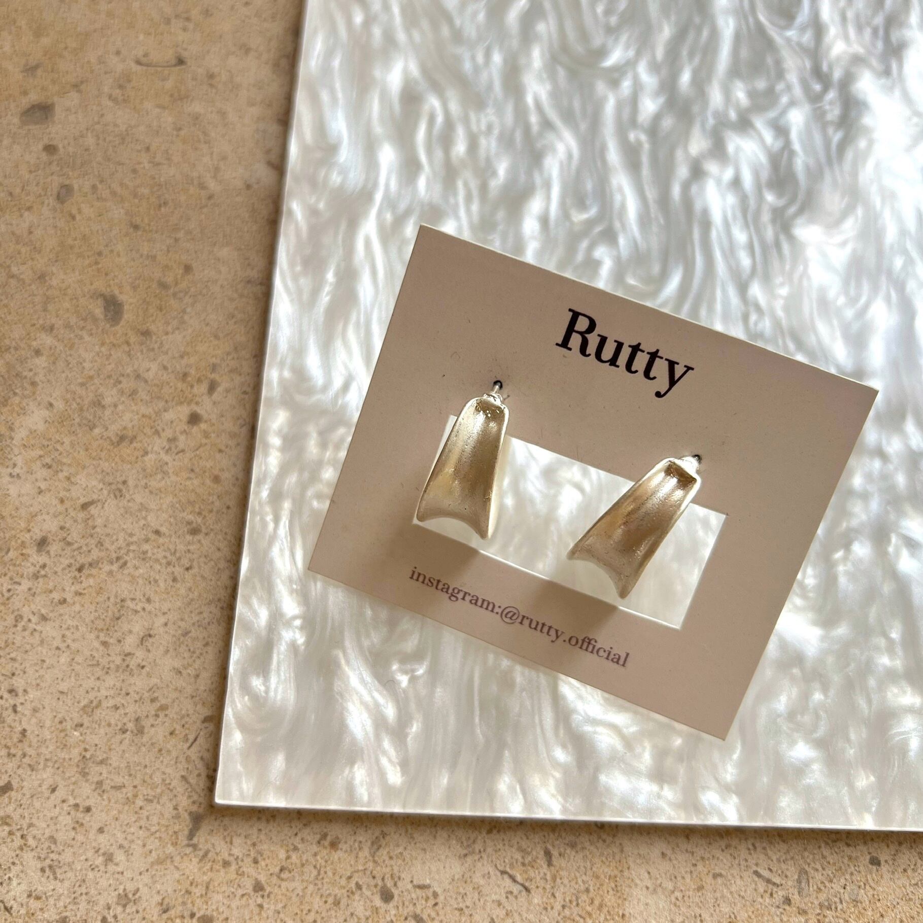 滑らかな曲線が美しい、シルバーのミニマルピアス。シルバーでも光沢はなく、マット感があり、柔らかく流れるようなフォルムが特徴で、シンプルながらも洗練された印象を与えます